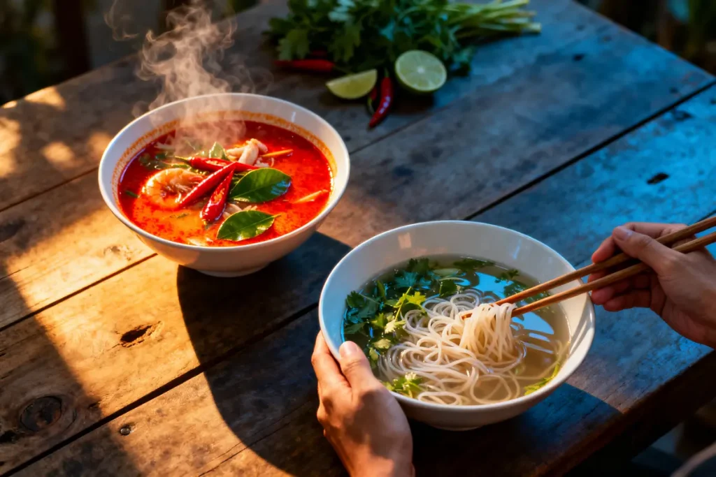 • Pho: Vietnamese noedelsoep met een zachte, aromatische bouillon