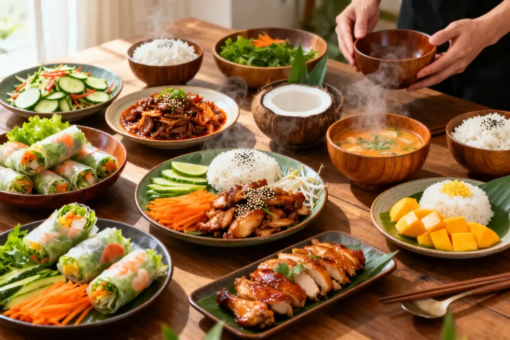 Het voorjaar vraagt om lichte, frisse gerechten. Aziatische keukens staan bekend om hun heldere smaken. Denk aan citrus, gember en kruidige aroma’s. Die passen perfect bij een Paasbuffet. Het brengt balans naast zwaardere klassiekers zoals brood, ei en zoete baksels.