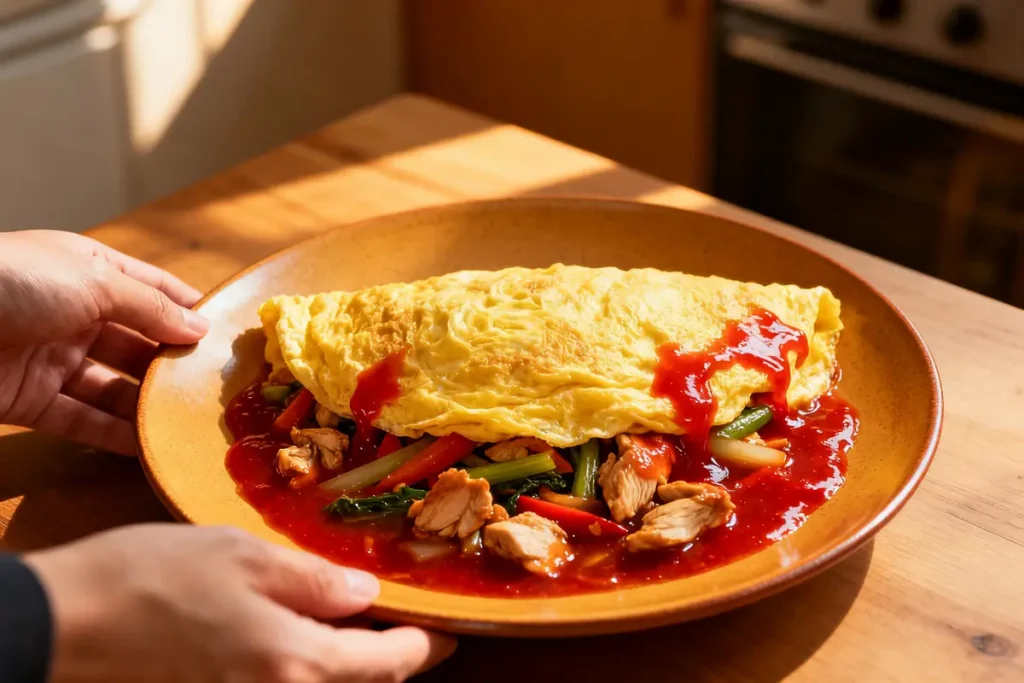 Als je het ooit zelf wilt proberen, merk je dat het eigenlijk een heel eenvoudig gerecht is. Het draait vooral om de structuur van de omelet en de balans van de saus.